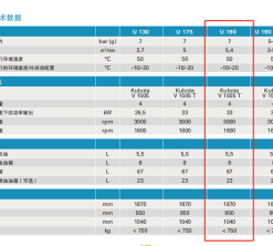 Máy nén khí Di động ATLAS COPCO U190, Động cơ Diesel, Động cơ Kubota V, Hộp dầu 67L